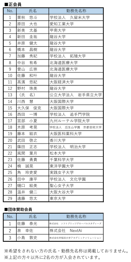 (~2025.9.5分まで<賛助会員・種別変更者>)