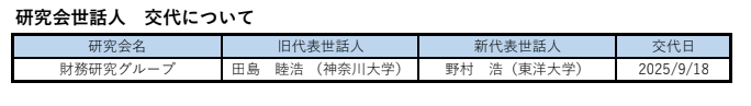 事務局より研究会世話人の交代についてご連絡いたします。
